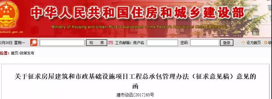 2017年有多個(gè)“征求意見(jiàn)稿”發(fā)布,涉及到資質(zhì)標(biāo)準(zhǔn)、建造師執(zhí)業(yè)管理、勞務(wù)資質(zhì)等影響范圍較大的重磅內(nèi)容。
